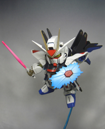 会社の先輩から譲り受けた簡易タイプのエアブラシを使い、初めて全塗装で仕上げた「BB戦士 ストライクフリーダムガンダム」です。